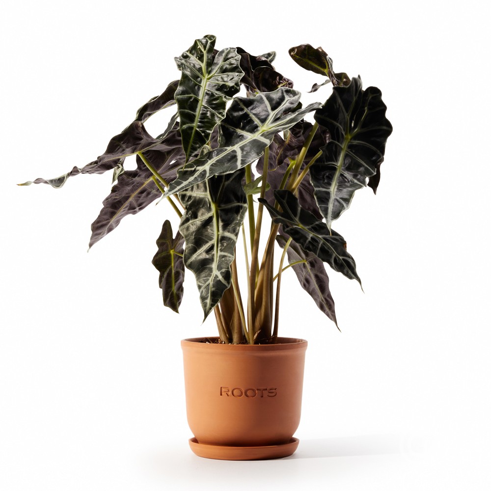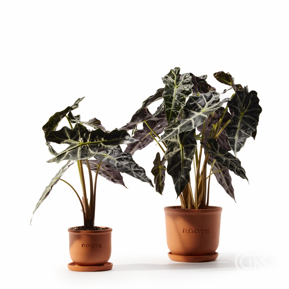 Эффектное декоративно-лиственное растение. Характеризуется большими глянцевыми фактурными листьями сердцевидной вытянутой формы, с заостенной верхушкой и волнистыми краями. Имеет необычную окраску - темно-зеленые листья с металлическим отливом, на которых выделяются яркие прожилки бледно-зеленого или кремового оттенка. По краям каждого листа находятся водяные устьица, с помощью которых алоказия избавляется от лишней влаги. Главная особенность этого сорта - относительно небольшая высота, в домашних условиях алоказия Полли редко вырастает выше 70 см. Также ей свойственно наиболее частое цветение, по сравнению с другими сортами алоказии. Требовательна к влажности, теплу и освещению, но в тоже время считается одним из самых неприхотливых сортов алоказий. Подойдет как начинающим, так и опытным цветоводам, которые легко справятся с этой тропической красавицей.