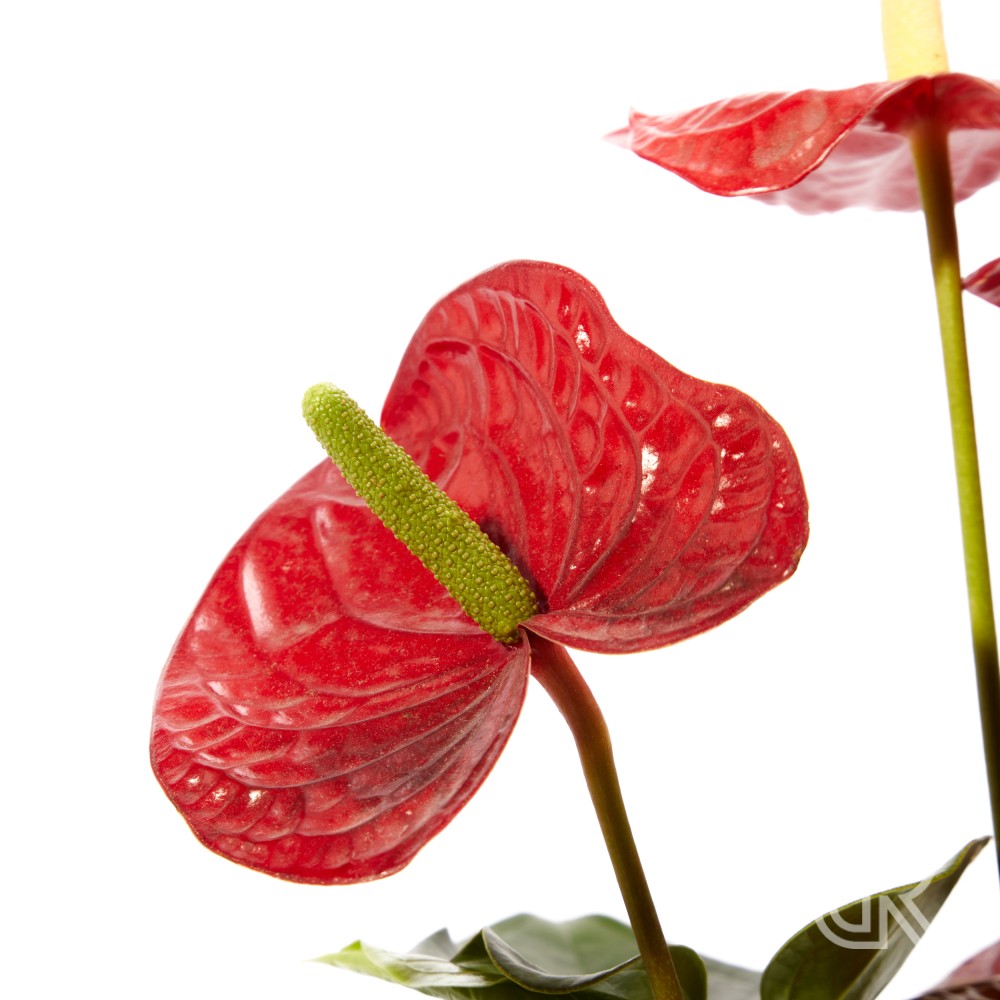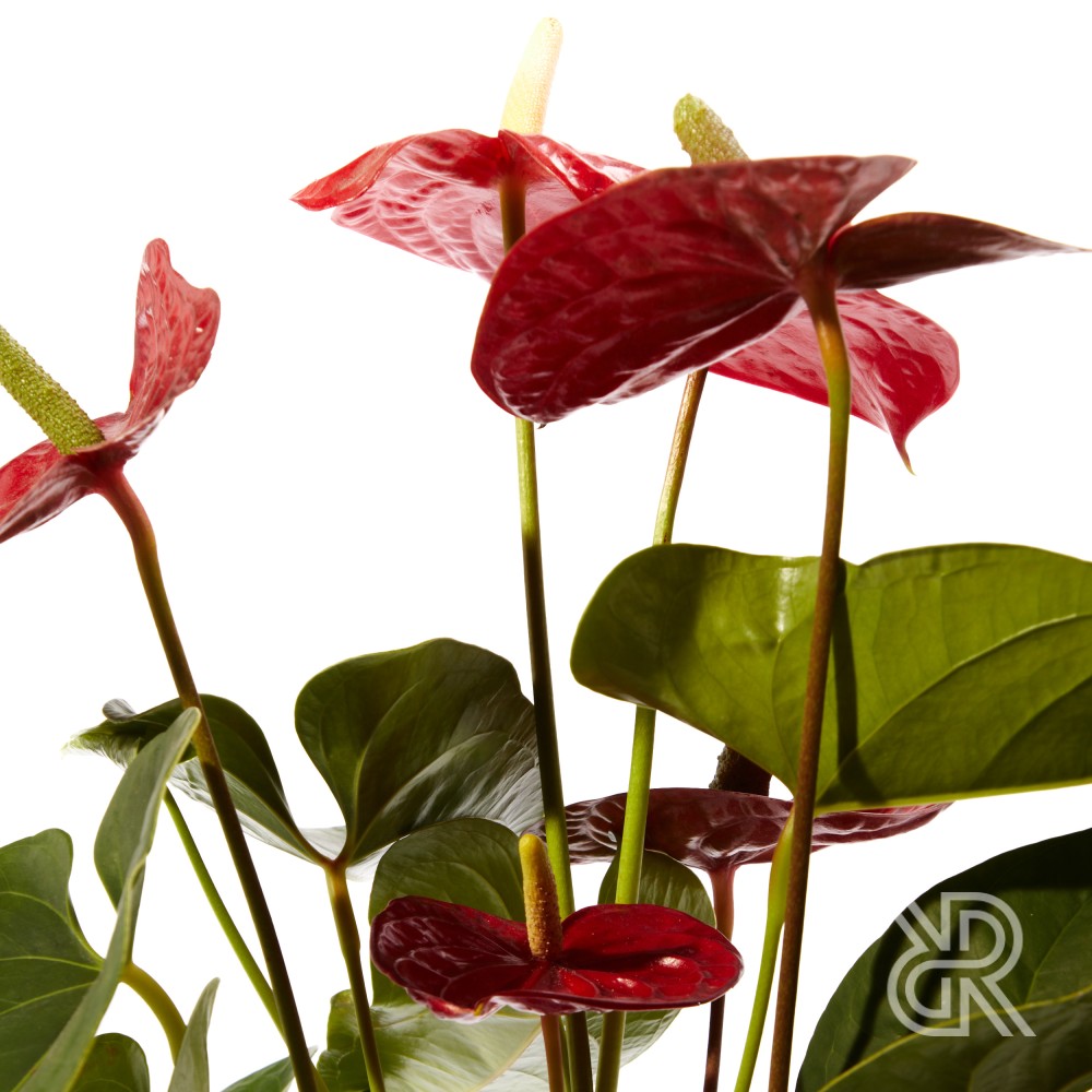 Антуриум Карма - эффектное декоративное цветущее растение. Характеризуется сердцевидными листьями темно-зеленого цвета с многочисленными крупными глянцевыми цветками насыщеного ярко-красного цвета. Может достигать в высоту 50-60 см, растет довольно медленно. Соцветия сохраняют декоративность 3-4 недели, и при правильном уходе растение может цвести практически круглый год. Отлично фильтрует воздух, устраняя вредные вещества. Станет прекрасным украшением интерьера и подойдет начинающим цветоводам. Диаметр около 17 см, высота около 65 см.