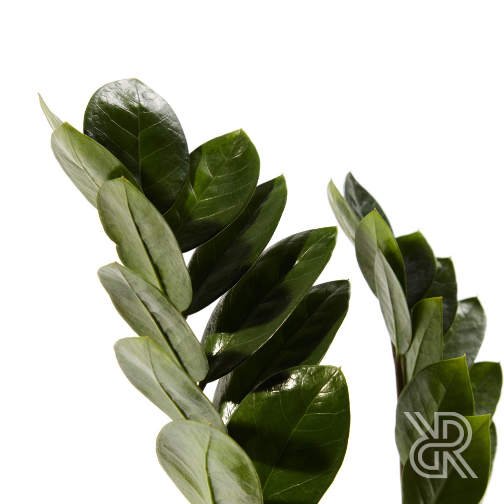 Замиокулькас - характеризуется глянцевыми мясистыми листьями на вертикальных побегах и крупными клубнями под ними. Клубни хранят в себе большое количество воды, что делает его засухоустойчивым растением, которое может неделями обходиться без воды. Растет очень медленно, за год появляется всего несколько новых листов и прирост составляет около 10 – 15 см в год. Но при хорошем уходе в течение своей жизни может достичь метровой высоты и даже выше. Замиокулькас умеет приспосабливаться к самым неблагоприятным условиям обитания, но не любит перелив. Диаметр около 17 см, высота около 65 см.