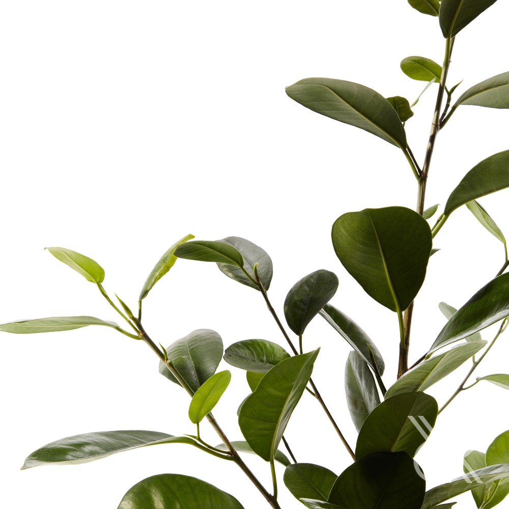 Стильное декоративно-лиственное растение. Характеризуется большим количеством воздушных корней и глянцевыми листьями эллипсоидной формы, имеющими ярко-зеленую насыщенную окраску. Растение компактно и в комнатных условиях достигает высоты до 1,5 метров. Станет эффектным украшением любого интерьера, зимнего сада или террасы. Помимо декоративных качеств, ценится за способность очищения воздуха от токсичных примесей и насыщение кислородом окружающей среды. С трудом адаптируется к новым условиям и потому плохо переносит перемещения, следует сразу определиться с постоянным местом и не переставлять его в дальнейшем. Относительно не прихотлив, прост в уходе. Подойдет для выращивания как опытным, так и начинающим цветоводам.