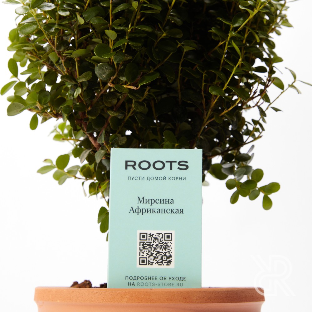 Стильное декоративно-лиственное растение, представляющее собой карликовое деревце. Характеризуется кожистыми глянцевыми листьями эллиптической формы насыщенного зеленого цвета, внутренняя сторона пластины имеет более светлую окраску. Побеги сильно ветвятся и окрашены в бледно-красный оттенок. Растет медленно, при комнатном содержании может достигать 1-1,5 метров. Прекрасно переносит обрезку, что позволяет выращивать мирсину в качестве культуры бонсай. Цветет в мае-июле мелкими цветами белого, розового или светло-лилового окраса, собранными в соцветия. К концу лета, после искусственного опыления, могут образоваться ягодообразные мясистые плоды темно-синего оттенка. Растение станет эффектным украшением любого интерьера. Растение требовательно к условиям содержания и рекомендуется для выращивания более опытным цветоводам.