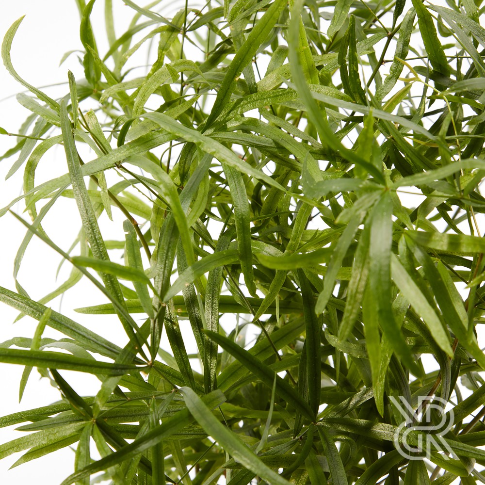 Аспарагус Фалькатус - вечнозеленое, достаточно неприхотливое растение. Представляет собой ветвистый многолетний кустарник, с необычными видоизмененными листьями, узкими, глянцевыми и чешуйчатыми, как хвоя, насыщенного изумрудного оттенка, которые растут на верхних частях побегов. Стебель растения покрыт колючками, напоминающими по форме серп. Их наличие позволяет побегам бесприпятственно взбираться по любой поверхности. Аспарагус часто выращивают как ампельное растение. Растет очень быстро, длина побегов может достигать 4-х метров. Редко цветет мелкими нежными кремовыми цветами, собранными в соцветия. Он отлично очищает воздух в помещении и наполняет его кислородом. Уход не сложен, растение легко адаптируется к различным условиям выращивания. Подойдет даже начинающим цветоводам.