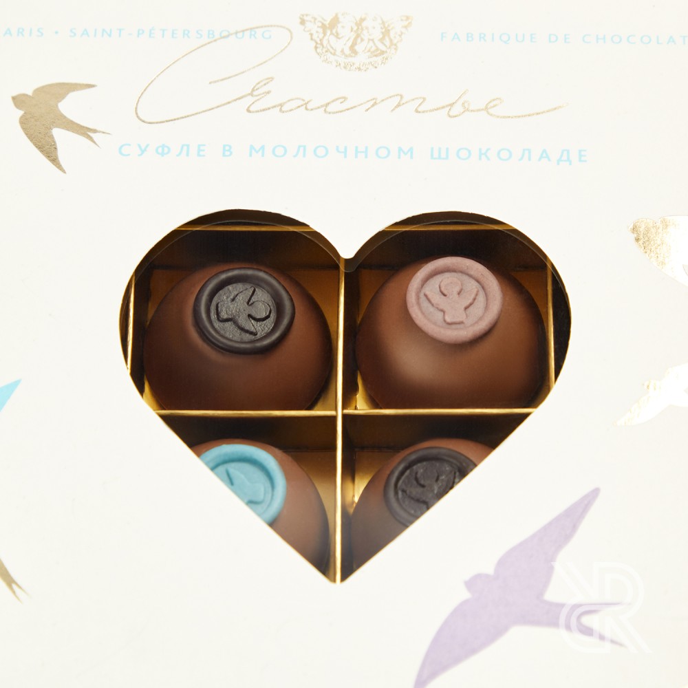 Коллекция суфле в молочном шоколаде 16 шт ассорти от конфетной фабрики «Счастье», созданные вручную по уникальному рецепту.